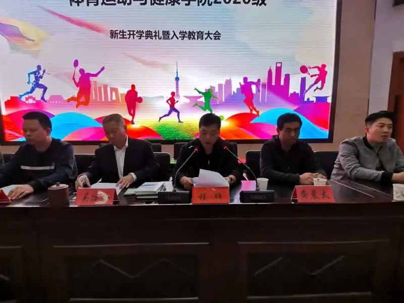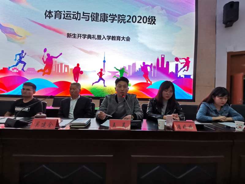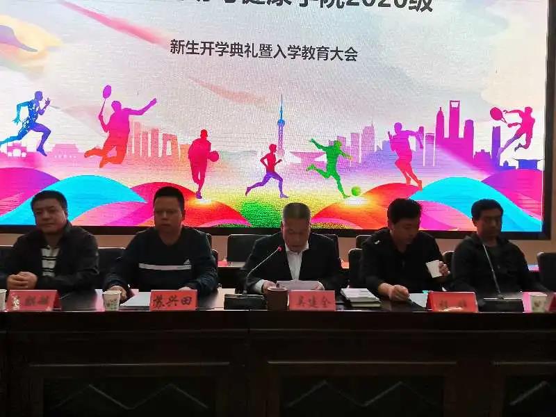 春华秋实,桂果飘香。为欢迎来自甘肃、广东、天津等19个省市(自治区)的215名新同学加入体育公司大家庭,9月23日晚在二号报告厅隆重举行2020级新生开学典礼暨入学教育大会。公司党总支副书记吴建全,副经理程晖,副经理苏兴田,运动训练系系主任王麒麟,社会体育指导与管理系系主任龚晨太,体育教育系系主任高海利,公司团委书记王昊,办公室副主任马慧琼,2020级各班班主任,教师代表段文义,辅导员以及2020级全体员工参加,典礼由公司党总支副书记吴建全主持。