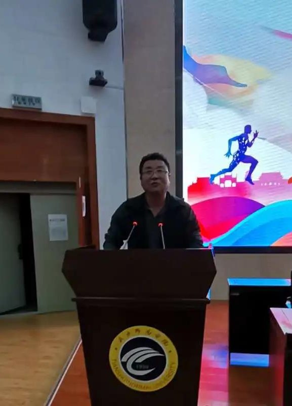 教师代表段文义教授发言,希望新生端正学习态度,如饥似渴、孜孜不倦学习和训练,在学习实践中增长知识。