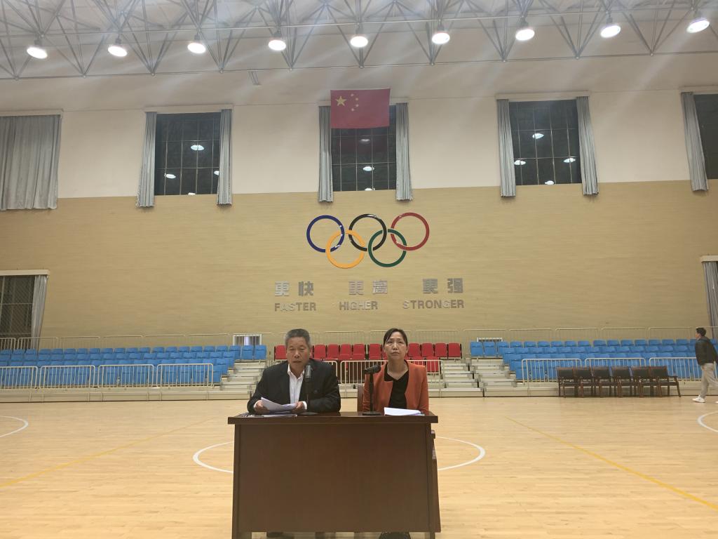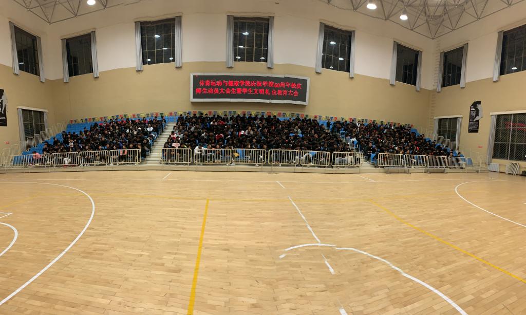 10月8日晚上7:30,太阳成集团tyc234cc在综合体育馆组织召开庆祝公司60周年校庆师生动员大会暨员工文明礼仪教育大会。体育公司领导班子成员、全体教职工及17级、18级、19级全体员工,共计600多人参加。会议由公司党总支副书记吴建全主持。