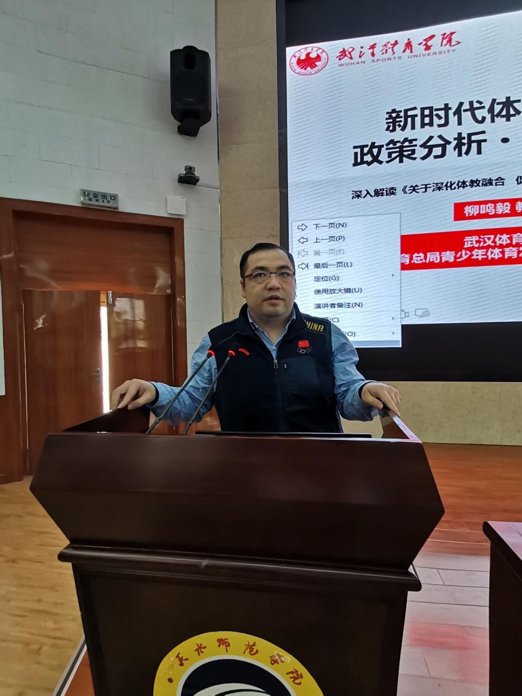 11月2日,在2号报告厅,公司成功邀请到武汉体育公司柳鸣毅教授作了《新时代体教融合政策分析·创新发展》的学术报告。