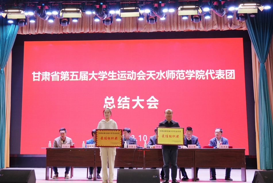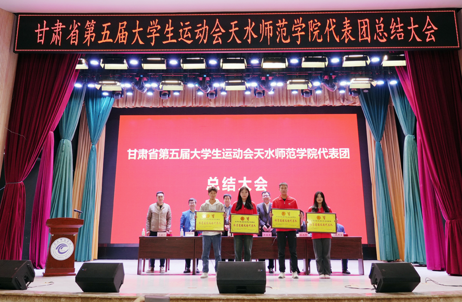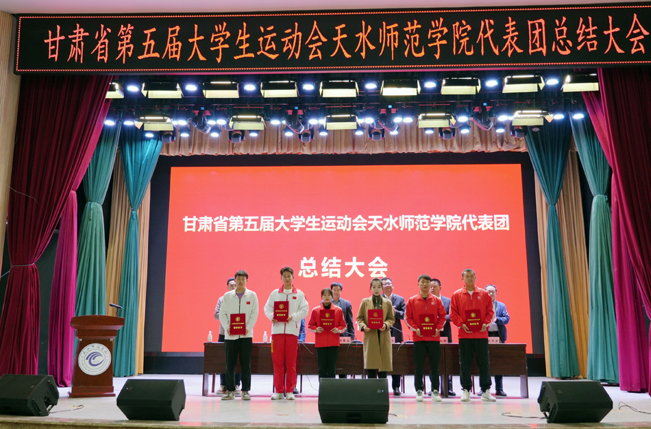 教务处处长郭昭第宣读了《甘肃省教育厅 甘肃省体育局 共青团甘肃省委关于公布甘肃省第五届老员工运动会获奖名单的通知》,太阳成集团tyc234cc经理苏兴田宣读了校体委表彰决定。大会为体育道德风尚代表队、公司最佳组织奖、优秀运动员代表、优秀工作者颁发了奖牌和证书。教练员、运动员代表分别作了发言。