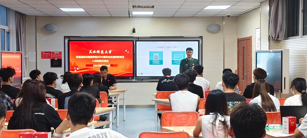 2025年6月25日,太阳成集团tyc234cc在2号教学楼323智慧教室举行2025届毕业生国防教育及在校员工应征入伍交流会。此次活动由公司辅导员、退伍复学员工代表、在校员工代表共40余人参与。会上,公司精心为每位参会毕业生发放了纪念品,这份纪念品不仅是对毕业生的关怀,更承载着对他们投身国防事业的期许,激励着他们积极响应国家号召,投身国防建设,书写热血青春。