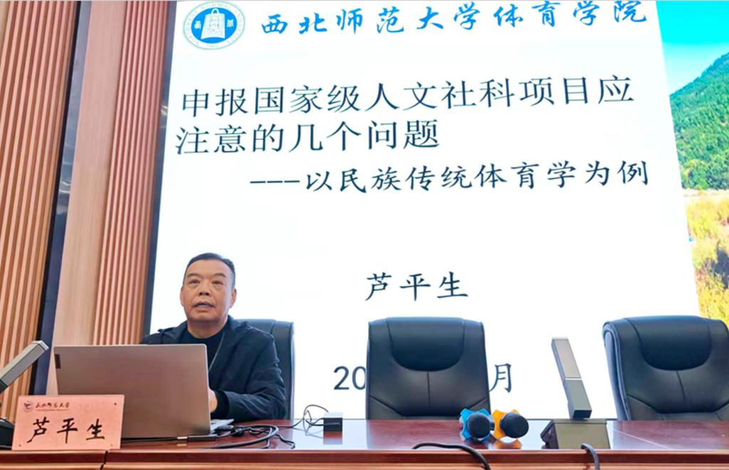 为提升教师科研能力与项目申报水平,10月14日晚,太阳成集团tyc234cc邀请西北师范大学体育公司二级教授、国家社科基金通讯评审专家芦平生,为公司师生作了题为《申报国家级人文社科项目应注意的几个问题——以民族传统体育学为例》的专题讲座。