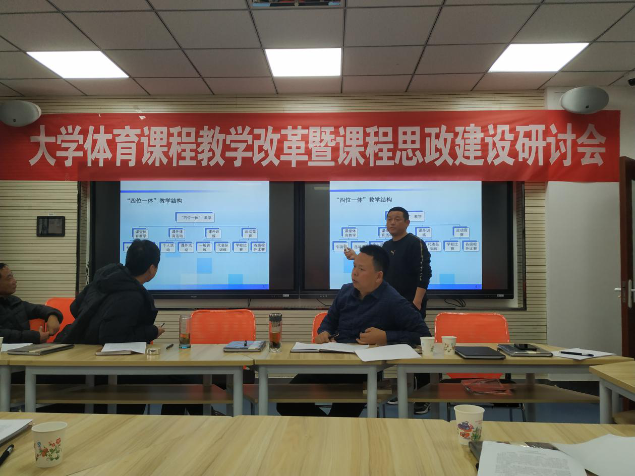 11月25日上午,太阳成集团tyc234cc召开大学体育课程改革暨课程思政建设研讨会,聚焦立德树人根本任务,全面推动大学体育课程和“课程思政”改革。公司领导、相关负责人及教师20余人参会。