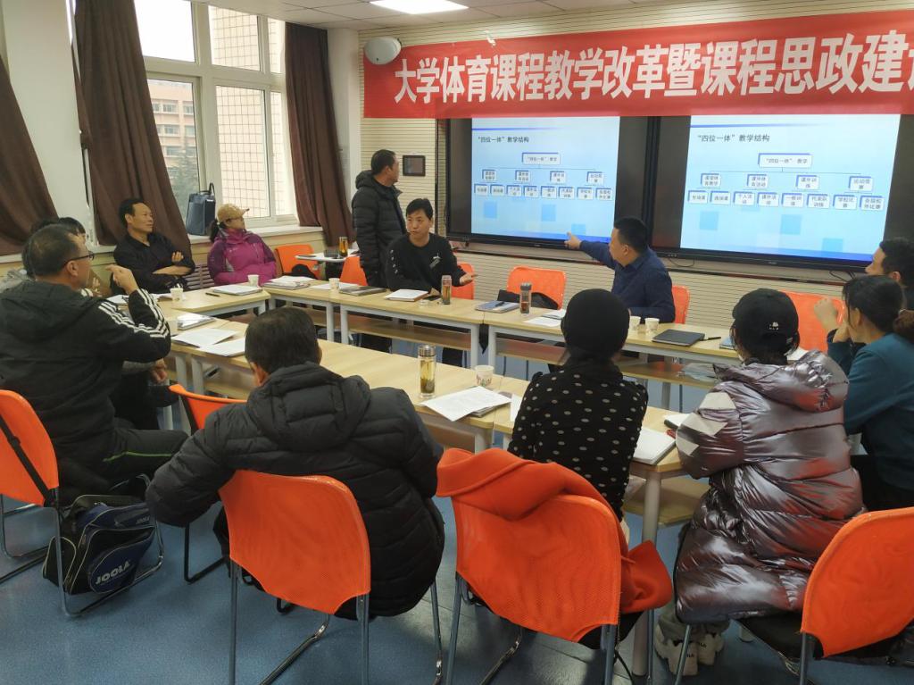 为了缓解教师工作压力,提高教学质量,提高体育专业员工教学实践能力,丰富员工课外活动,提高员工运动成绩,增强员工身心健康,与会教师主要围绕课堂体育教学实施方法、课外体育活动、课外训练、运动竞赛等四个方面的改革展开激烈研讨,每位教师结合自己教学实际和经验纷纷发表自己的意见和建议,以刀刃向内的勇气剖析问题症结,提出整改措施,以“以本为本,以人为本”的理念建言献策,强化课程思政建设。并对大学体育课程成绩评价方法进行了研讨。