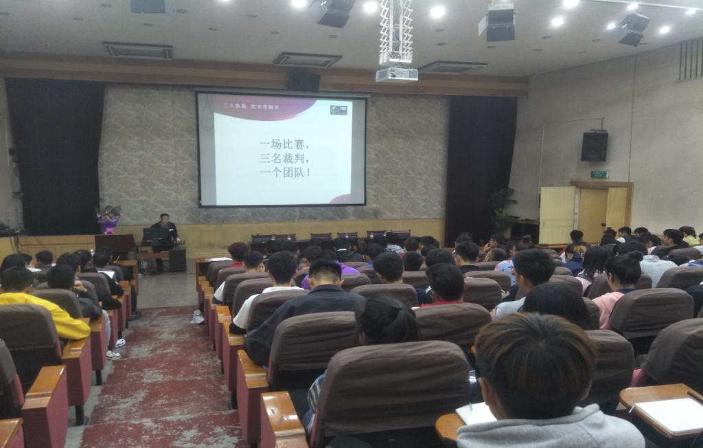 专业的解讲进行了两个小时,培训的同学受益非浅,达到了培训的目的,同学们对于今后的临场执裁充满了信心,最后,全体同学与罗睿教授、苏波、张飞老师合影留念。