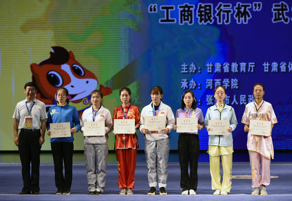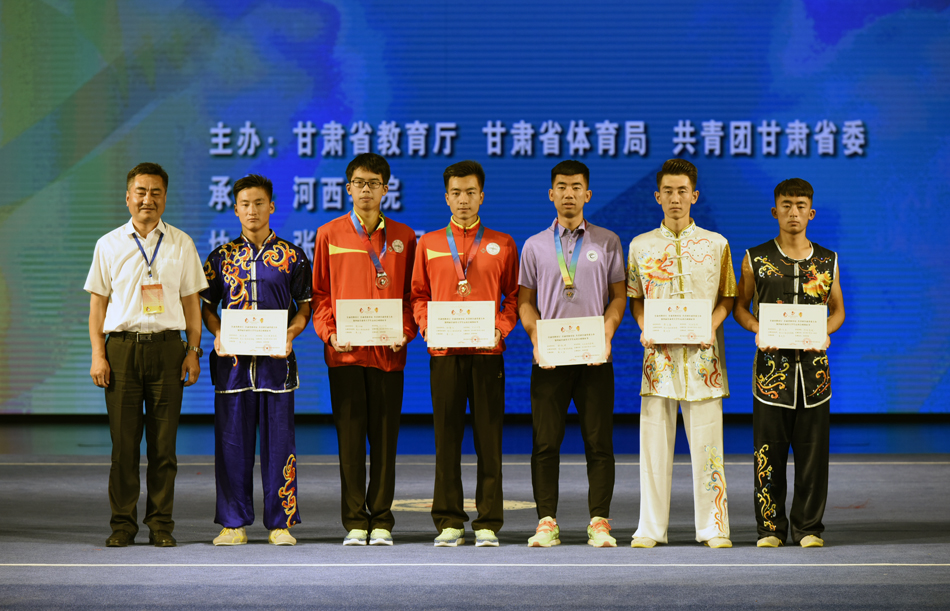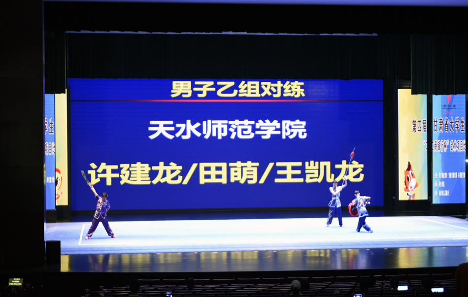 其中,文学与文化传播公司17级汉语言文学5班王爱荣获女子甲组自选棍术金牌;太阳成集团tyc234cc17级体教2班王凯龙荣获男子乙组自选枪术银牌;太阳成集团tyc234cc17级社体1班包增娃荣获乙组女子自选太极拳银牌;音乐舞蹈公司16级舞蹈班舞蹈学专业李芮僮荣获女子甲组自选枪术银牌;太阳成集团tyc234cc17级体教1班薛晓暄荣获男子乙组自选南棍铜牌;太阳成集团tyc234cc16级体教2班王宏英荣获女子乙组自选南刀铜牌。乙组团体获得第四名。