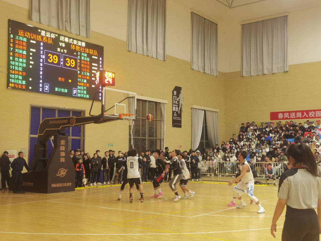 本次篮球赛各参赛队充分发扬“友谊第一、比赛第二”的体育竞技精神,以精湛的技术,团结拼搏,奋勇争先,充分展示了良好的精神风貌。每场比赛都吸引了众多学生前来观看。一幕幕精彩的竞技比赛,赢得在场观众阵阵掌声和喝彩声。在闭幕式上,组织了运动训练队VS体教社体联队表演赛。