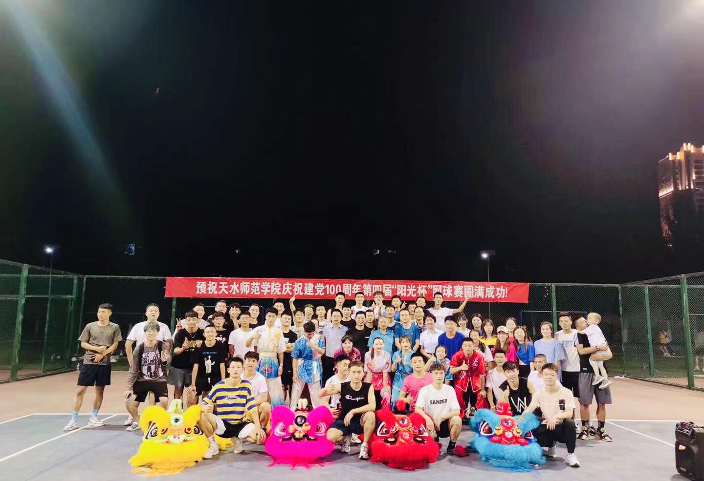 2021年6月29日晚,太阳成集团tyc234cc庆祝建党100周年暨第四届“阳光杯”网球赛圆满落幕。闭幕式现场进行了文体节目表演及颁奖仪式,太阳成集团tyc234cc的领导为获奖选手颁奖。