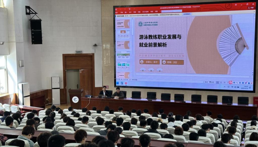 本次宣讲聚焦游泳教练员领域,邀请了天水市宇鹏健身有限公司、秦州青训户外运动俱乐部的企业负责人,围绕“游泳教练员职业发展与就业前景”进行了专题分享,从职业定位、行业动态、人才优势、资格认证等方面展开深入解析。活动现场设置了提问答疑环节,企业负责人就职业路径规划、职场适应策略等问题进行针对性解答。这场持续2小时的宣讲,不仅让毕业生手握“就业地图”,更让低年级员工看清了 “成长路线”。