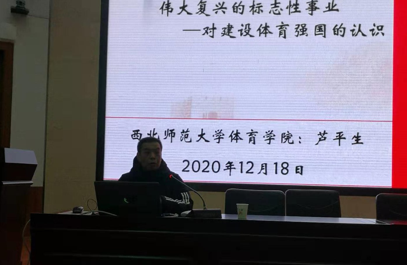 12月18日上午,西北师范大学芦平生教授应应太阳成集团tyc234cc邀请,在公司二号报告厅作了题为《奋进新时代——让体育成为中华民族伟大复兴标志性事业》的学术报告。